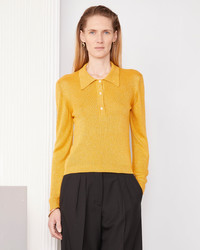 Long sleeve knitted polo. Fitted body. Flat collar. Buttoned polo tab. Rib on body and sleeves. - 89% Viscose 11% Polyester - Fitted body - Long sleeve knitted polo - Flat collar - Buttoned polo tab - Rib on body and sleeves - Italian yarn - Made in Portugal - Machine washable with great care. However, we recommend dry cleaning to ensure a long and beautiful life for your sweater. This product sizes normally, we advise you to take your usual size. Our model measures 1m75 and wears a size S. Exists in sizes XS to XL. REF: W25WKNT300