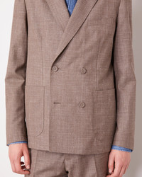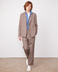 Double breasted jacket with notch lapel. Regular fit. - 70% virgin wool 20% silk 10% linen - Notch lapel - 4 buttons - Soft shoulder - Patch pockets - Double vents at back - 4 holes self fabric covered buttons - Fully lined - Matching pants availabke - Dry cleaning only - Made in Portugal This product sizes normally, we advise you to take your usual size. Our model measures 1m86 and wears a size S. Exists in sizes XS to XL. REF: S26MTLG403PRE