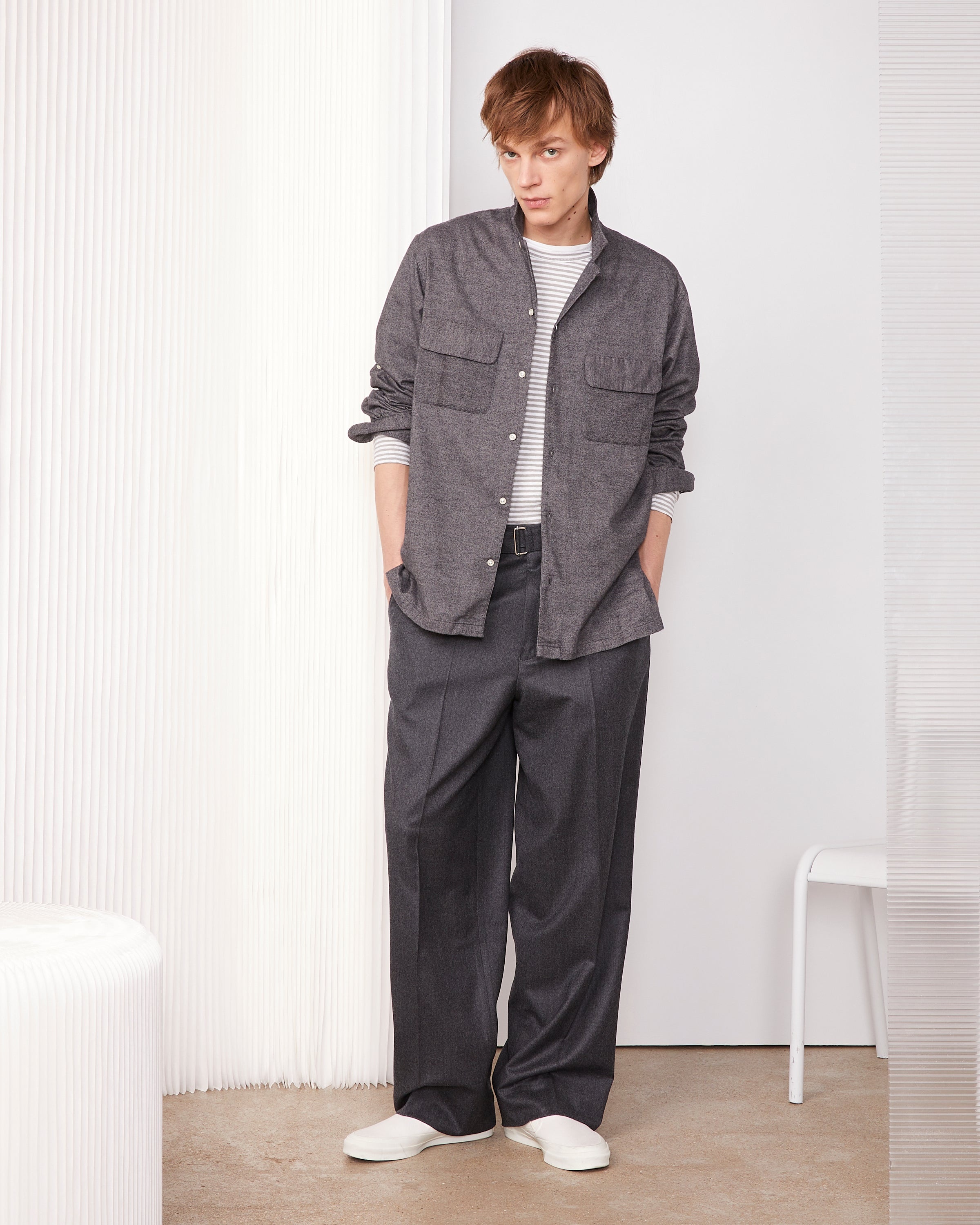 Long-sleeved, loose-fitting shirt. Single button placket and patch pocket with flaps at chest. Sleeves can be rolled up with a button tab. Straight hem and side slits. - 100% organic cotton - Camp collar - Front buttoned placket - Two patch pockets with flaps on the chest - Long sleeves with buttoned roll-up tab - Side slits - Straight bottom - Western back yoke detail - Made in Portugal - Lavable en machine avec couleurs similaire, 30° - Machine washable with similar colors, 30° This product sizes normally, we advise you to take your usual size. Our model measures 1m86 and wears a size S. Exists in sizes XS to XXL. REF: W25MSHI014