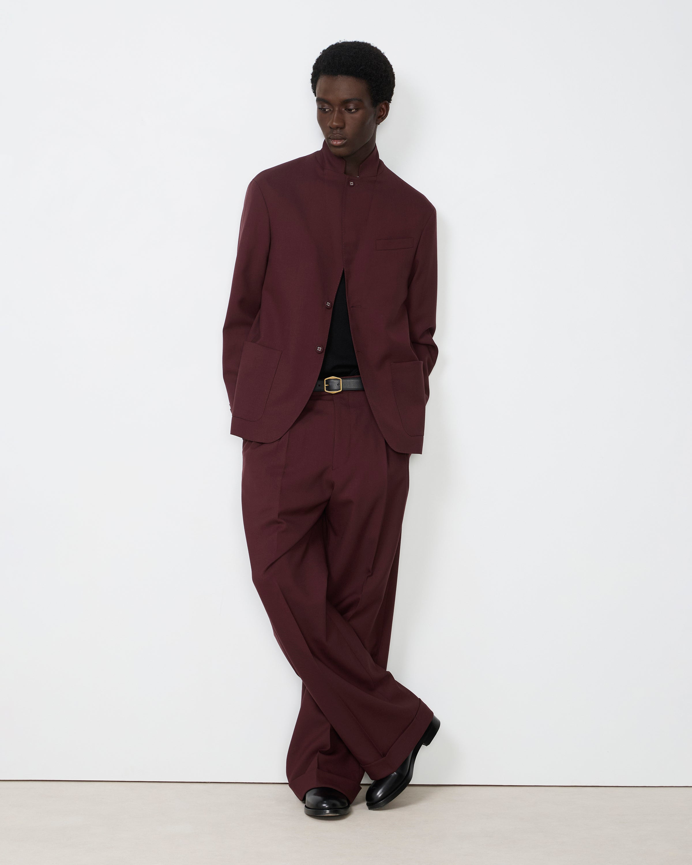 Straight jacket with two buttons and slightly loose fit. Dropped shoulders. Patch pockets on the front. Double back slit. Covered four-holes buttons. Closable collar with button and buttonhole. Fully lined. Trousers available in the same fabric. - 100% virgin wool - Closable notch lapel - Single breasted with 2 buttons - Welt pocket on the left chest - Two big patch pockets on the front - Two slits at the back - 4 holes covered buttons - Fully lined - Matching pants available - Made in Portugal - Dry cleaning only This product sizes normally, we advise you to take your usual size. Our model measures 1m86 and wears a size 48. Exists in sizes 44 to 56. REF: W25MTLG415EW