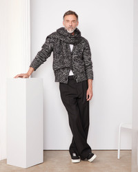 Slightly loose-fitting cardigan with V-neck collar. 1x1 rib at bottom and cuffs. - 40% cotton 28% mohair 22% polyamide 10% virgin wool - V-neck cardigan collar - Four buttons front placket - Long sleeves - Ribbed cuffs and bottom - Made in Portugal - Dry cleaning only This product sizes normally, we advise you to take your usual size. Our model measures 1m86 and wears a size S. Exists in sizes XS to XXL. REF: W25MKNT317