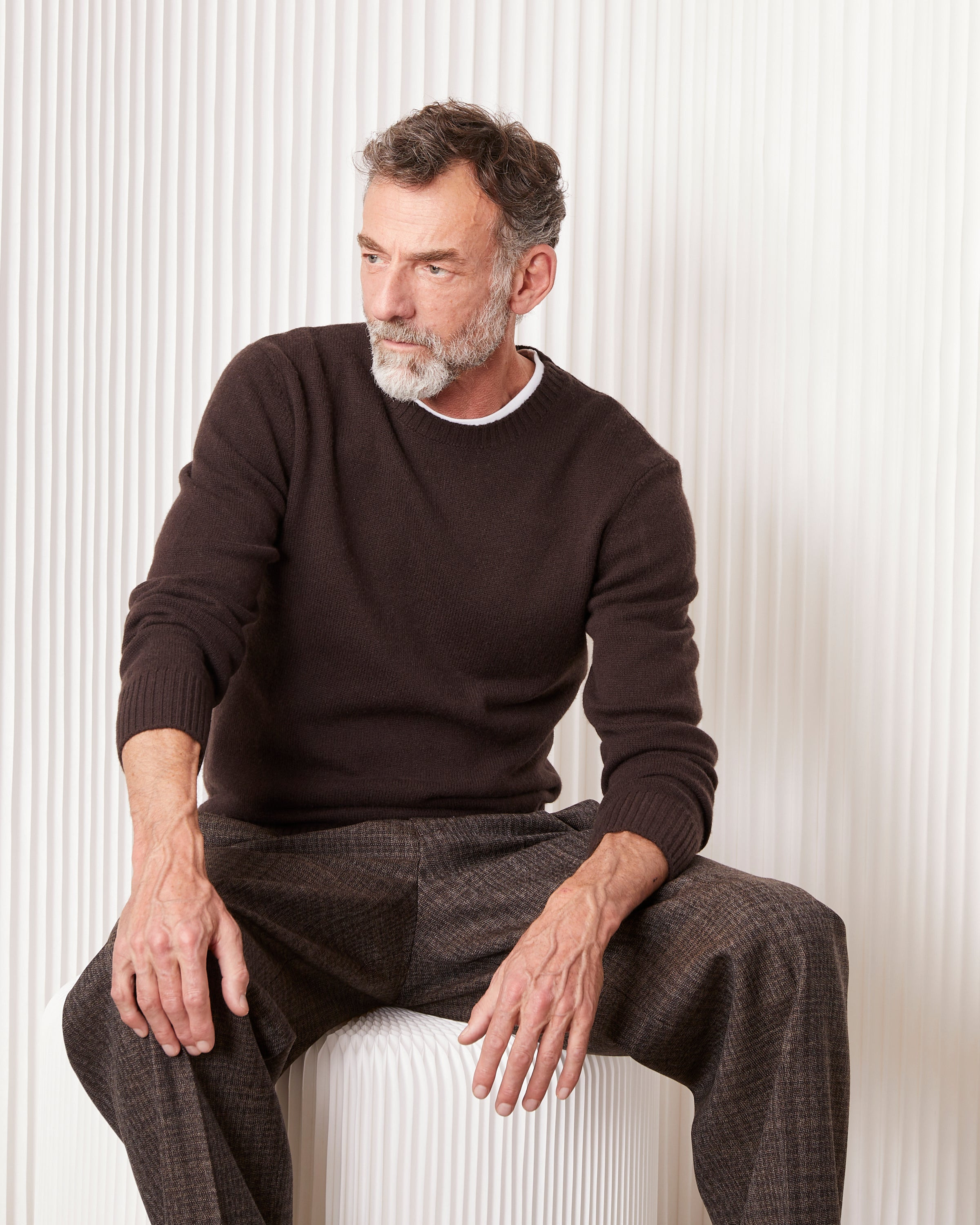 Crewneck sweater. 2x2 rib on collar, hem and cuffs. - 90% wool 10% cashmere - Rounded collar - Long sleeves - Ribbed collar, cuffs and bottom - Made in China - Dry cleaning only This product sizes normally, we advise you to take your usual size. Our model measures 1m86 and wears a size S. Exists in sizes XS to XXL. REF: W25MKNT328