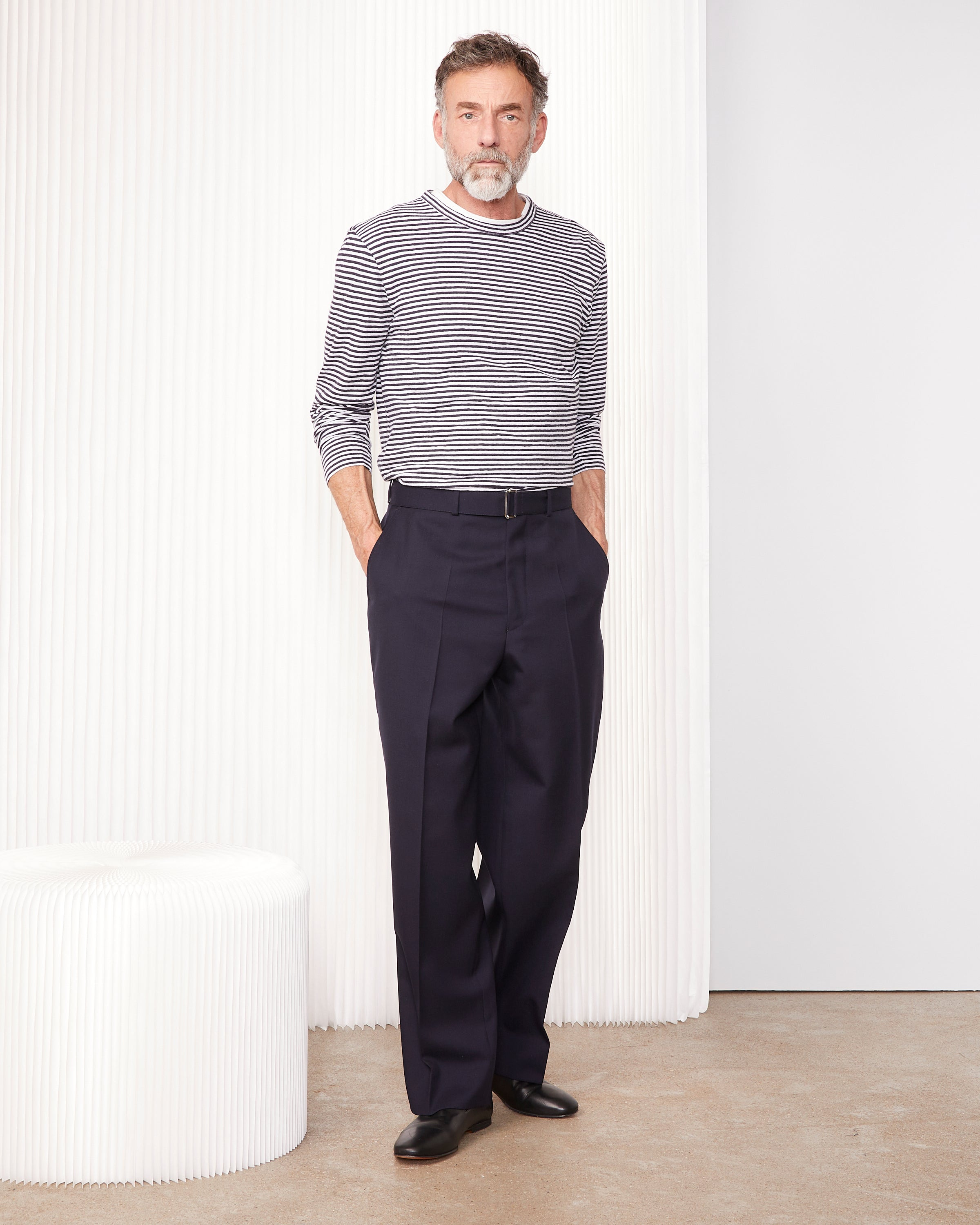 Loose-fitting, plain trousers. Italian pockets and buttoned double welt pockets on back. Fly with hidden zip fastening. Covered four-holes buttons. Removable fabric belt. Lined from the waist to the knee. Jacket available in the same fabric. - 100% virgin wool - Plain front - Two italian pockets at the front - Hidden zipped fly - Two buttoned double welt pockets at the back - Removable fabric belt - Lined from the belt to the knee in the front - 4 holes covered buttons - Matching jacket available - Made in Portugal - Dry cleaning only This product sizes normally, we advise you to take your usual size. Our model measures 1m86 and wears a size 48. Exists in sizes 44 to 56. REF: W25MTLG456