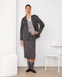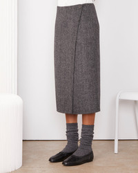 Long wrap-over skirt with a slightly angled opening and a button on the left side of the waist. Classic fit. Straight cut. Matching jacket available. - 50% Wool 50% Polyamide - Classic fit - Straight cut - Long wrap-over skirt - Button on the left side of the waist - Matching jacket available - Made in China - dry cleaning only This product sizes normally, we advise you to take your usual size. Our model measures 1m75 and wears a size S. Exists in sizes XS to XL. REF: W25WSKT152