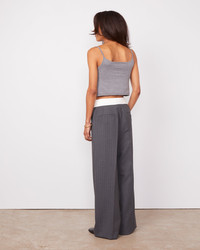 High waisted pants with wide leg. - 100% Virgin Wool - Loose fit - Visible contrasted white prepared waistband - Italian pockets - Welt back pockets - Matching jacket available - Dry cleaning only - Made in Portugal This product sizes normally, we advise you to take your usual size. Our model measures 1m75 and wears a size 36. Exists in sizes 34 to 44. REF: S26WTLG454PRE
