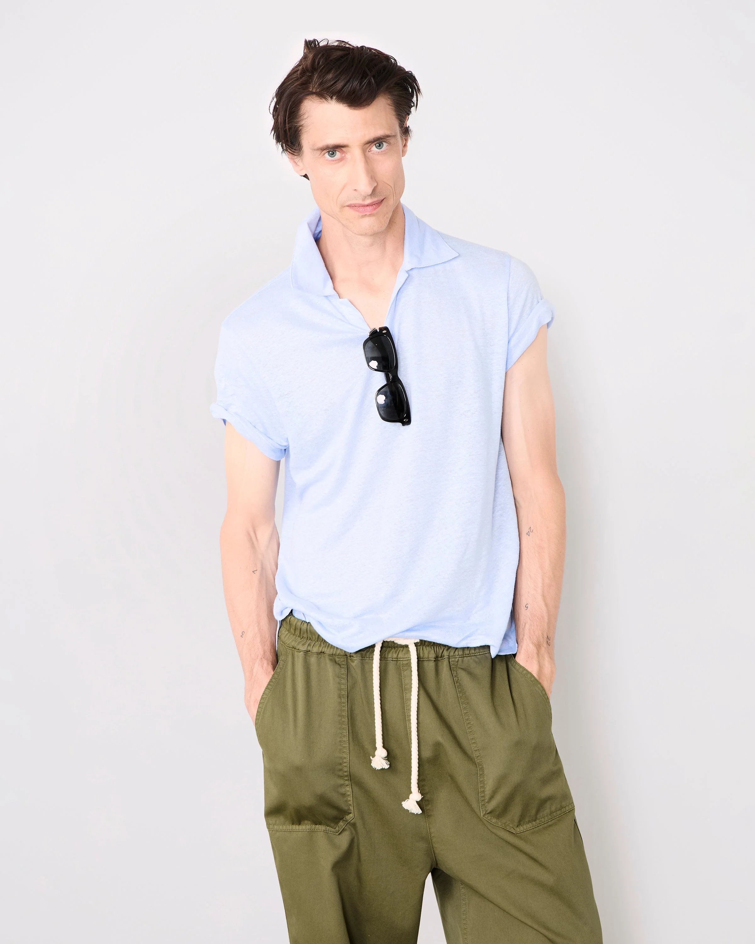 Short sleeves polo with a regular fit. - 100% linen - Polo collar - Short sleeves - Side slits - Straight bottom - Garment dye - Made in Morocco - Machine washable with similar colors, 30°. This product sizes normally, we advise you to take your usual size. Our model measures 1m86 and wears a size S. Exists in sizes XS to XL. REF: S26MTEE215