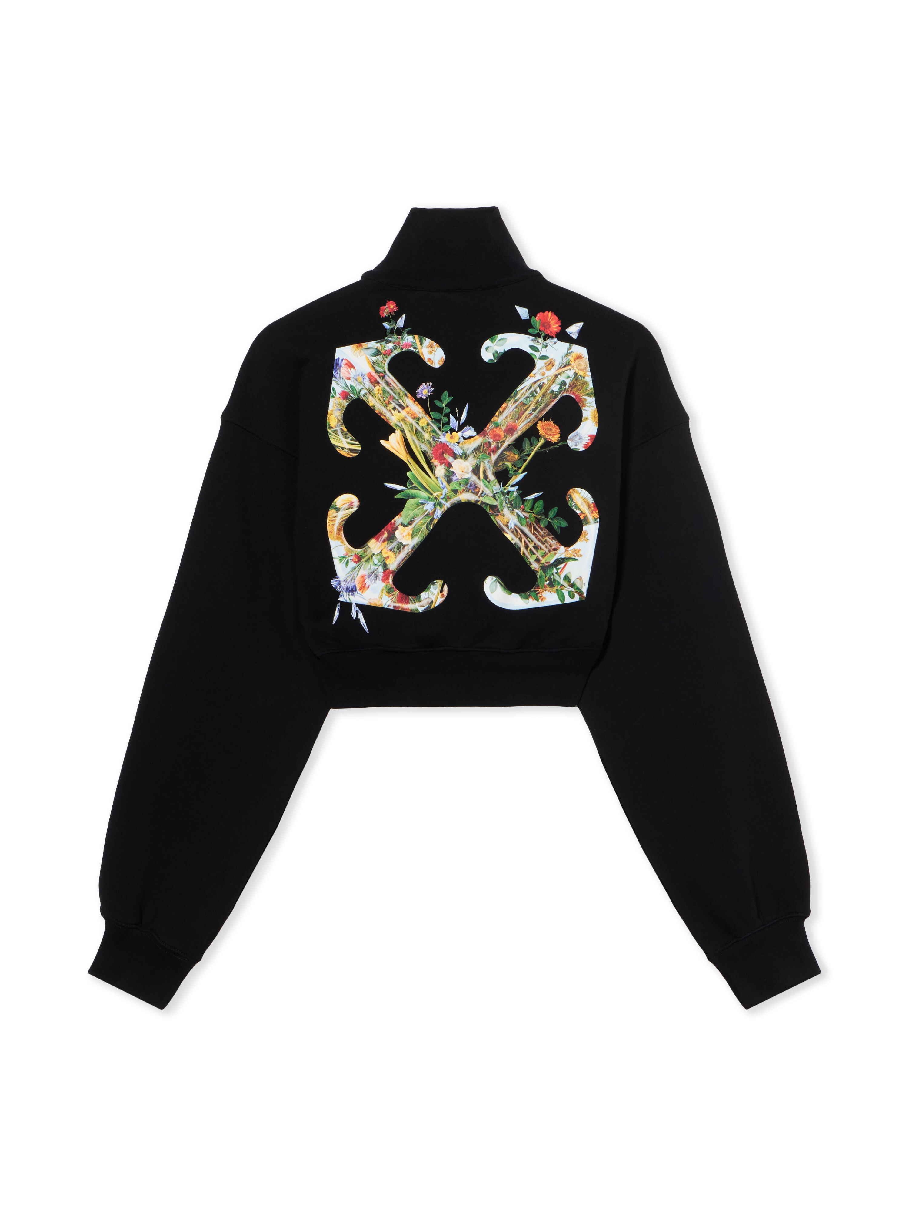 Cotton-blend crop jacket with zip fastening and floral motif. - High collar design - Full zip fastening - Long sleeves - Signature arrow floral motif at back - Cropped silhouette - Ribbed cuffs - Brand logo at chest DETAILS - Code: OWBE006F25FLE0021001