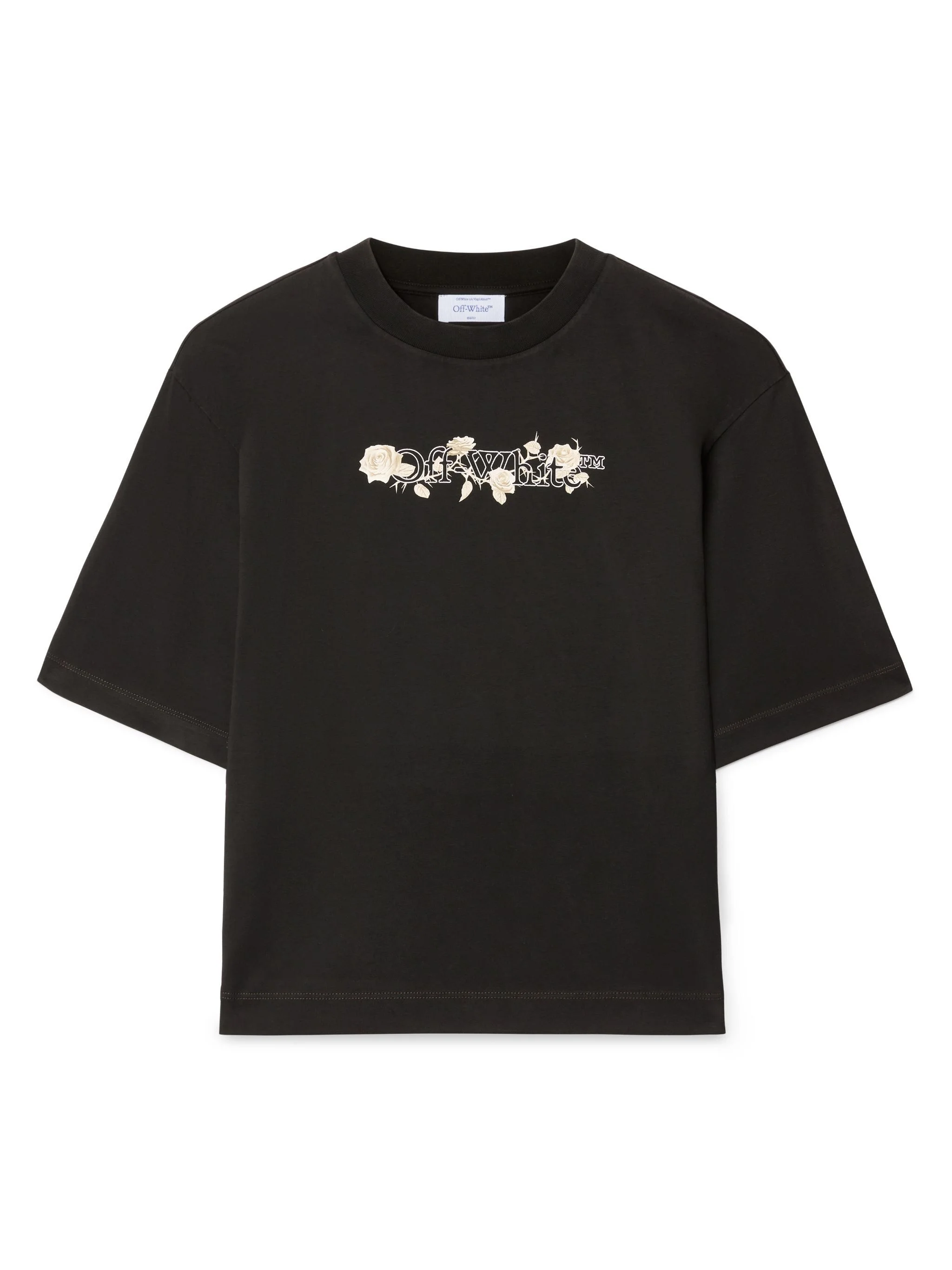 This 100% cotton t-shirt features a large bookish logo with roses. Boxy fit. DETAILS - BETTY WEARS SIZE S HEIGHT: 5' 9” (179 CM) BUST: 30” (76 CM) WAIST: 24“ (60 CM) HIPS: 34” (87 CM) - Materials:Cotton 100% - Code: OWAA124S25JER0020701