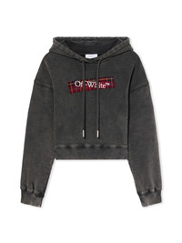 Experience architectural simplicity with the Bookish Crop Hoodie, blending soft cotton with urban flair, featuring an Off-White™ logo and plaid accents for a distinctive streetwear silhouette. - Sculptural hooded neckline with drawstring feature - Long sleeves with ribbed cuffs enhance form - Front embroidered Off-White™ logo patch on plaid background - Cropped hemline for modern urban aesthetic - Rear panel maintains seamless, clean finish DETAILS - Material: 100% Cotton, Rib Details: 5% Elastane 95% Cotton - Code: OWBB056F25FLE0031301