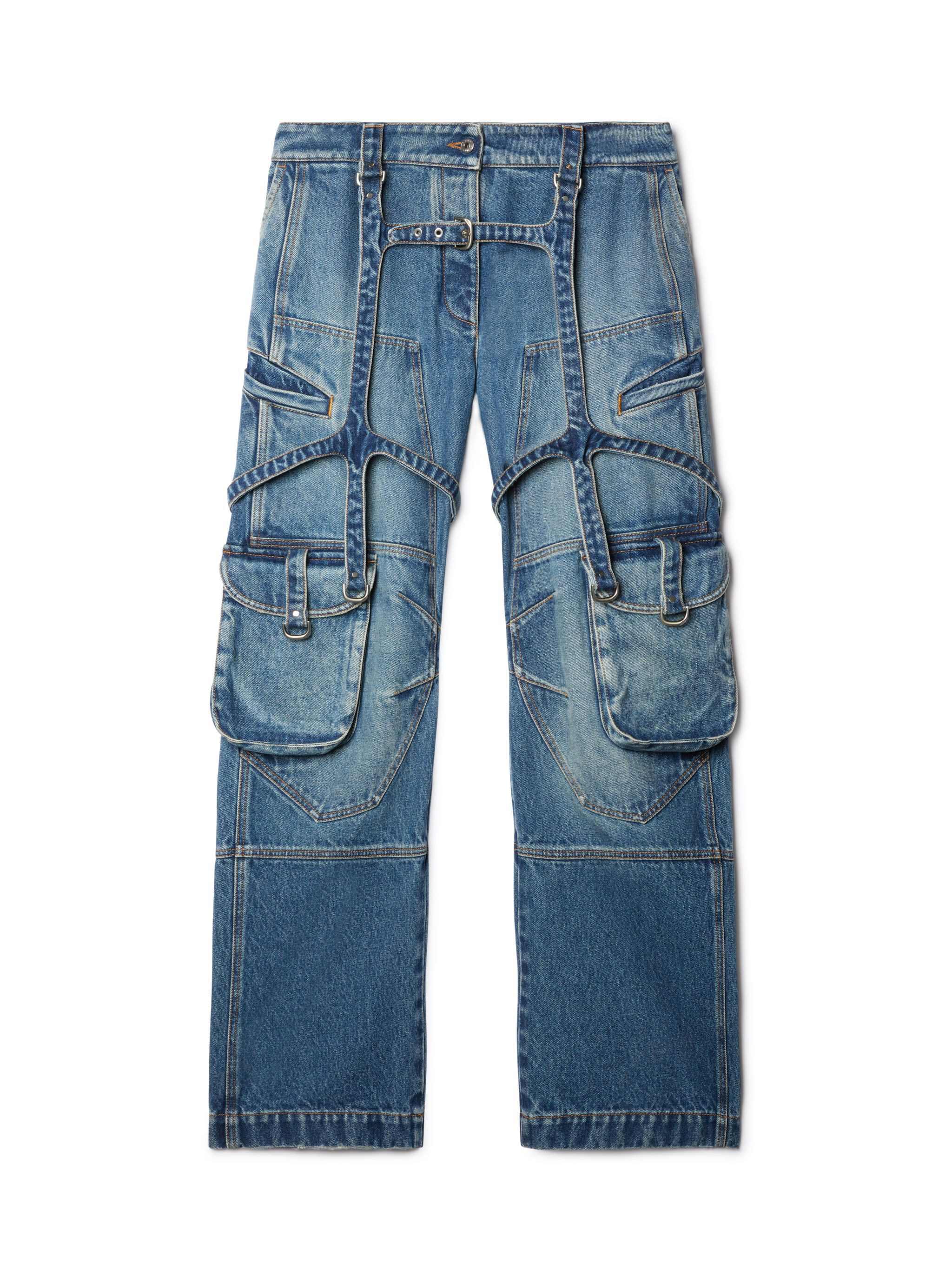 Part of Wardrobe, the curated selection of Off-White™ staples, these 90s-inspired baggy jeans feature multiple cargo pockets and crossed harness-style detailing. Made in Italy. DETAILS - LYDIA WEARS SIZE 26 HEIGHT: 5' 9” (178 CM) BUST: 30” (77 CM) WAIST: 24“ (58 CM) HIPS: 34“ (88 CM) - Materials:Cotton 100% - Code: OWYB018C99DEN0014500