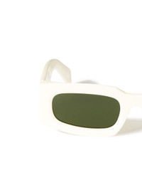 These acetate sunglasses feature a bold silhouette that blends rectangular and cat-eye forms with exaggerated temples. A geometric step along the top bar and encased lenses enhance their depth. The arms are completed with a tonal lasered arrow logo pattern. Made in Italy. DETAILS - Acetate 100% - Code: OERI141S25PLA0010155