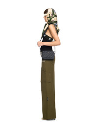 This camera bag is crafted from 100% cotton quilted denim with leather detailing on the woven logo shoulder strap. It features an arrow logo plaque and matching hardware on the strap. Made in Italy. DETAILS - JUNI WEARS SIZE O/S HEIGHT: 5' 7” (176 CM) BUST: 28” (73 CM) WAIST: 23“ (60 CM) HIPS: 35” (89 CM) - Materials:OUTER:Cotton 100%, LINING:Cotton 95%, OUTER:Calf Leather 100%, LINING:Acrylic 5% - Code: OWNN18ES25FAB0014900