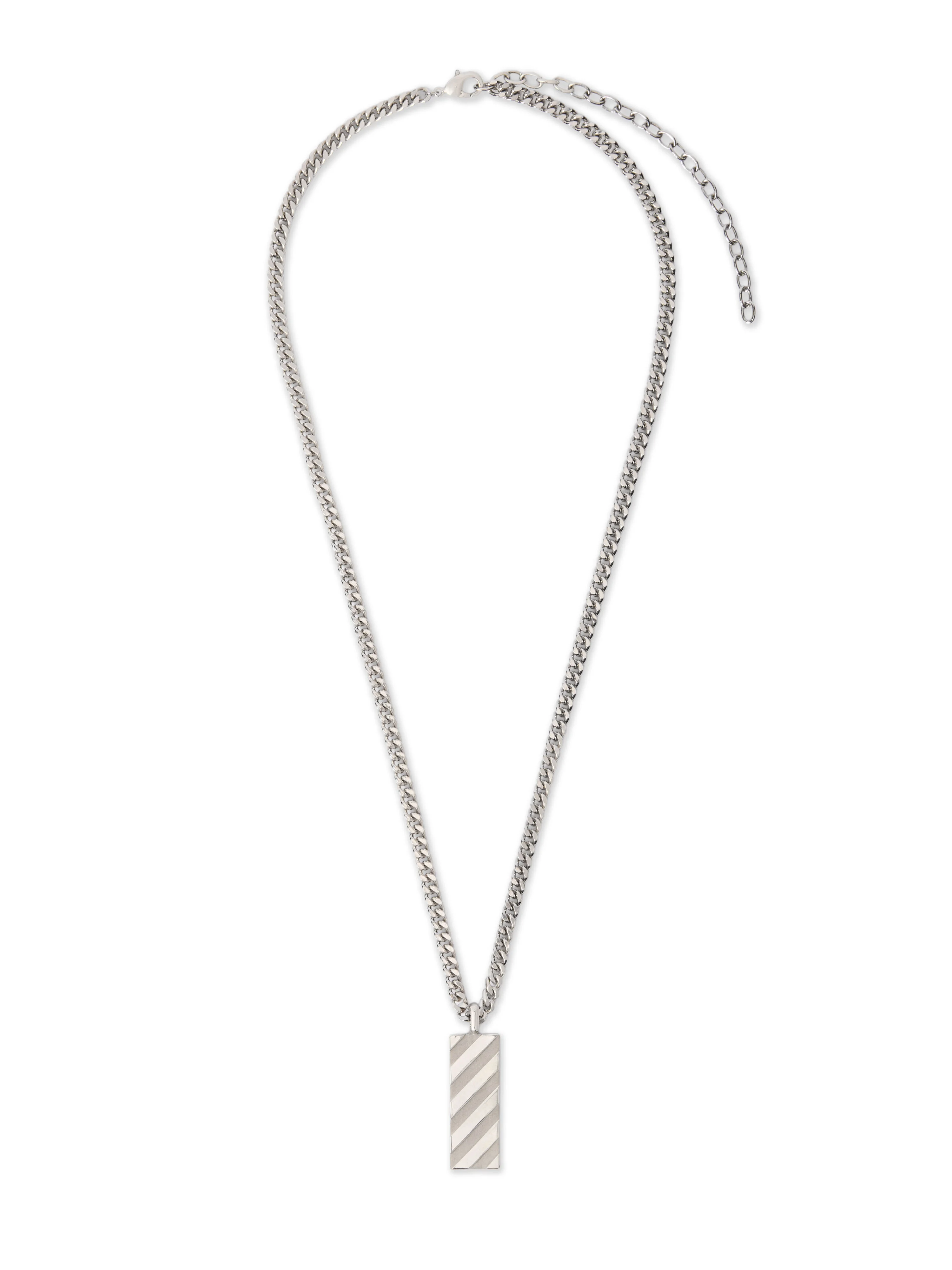 A meticulously crafted necklace featuring a diagonal striped pendant, embodying a refined urban aesthetic. - Diagonal striped pendant - Polished metallic finish - Adjustable chain length - Secure lobster clasp fastening - Made in Italy DETAILS - Material: 1 100% Brass - Code: OMOB15WF25MET0017272