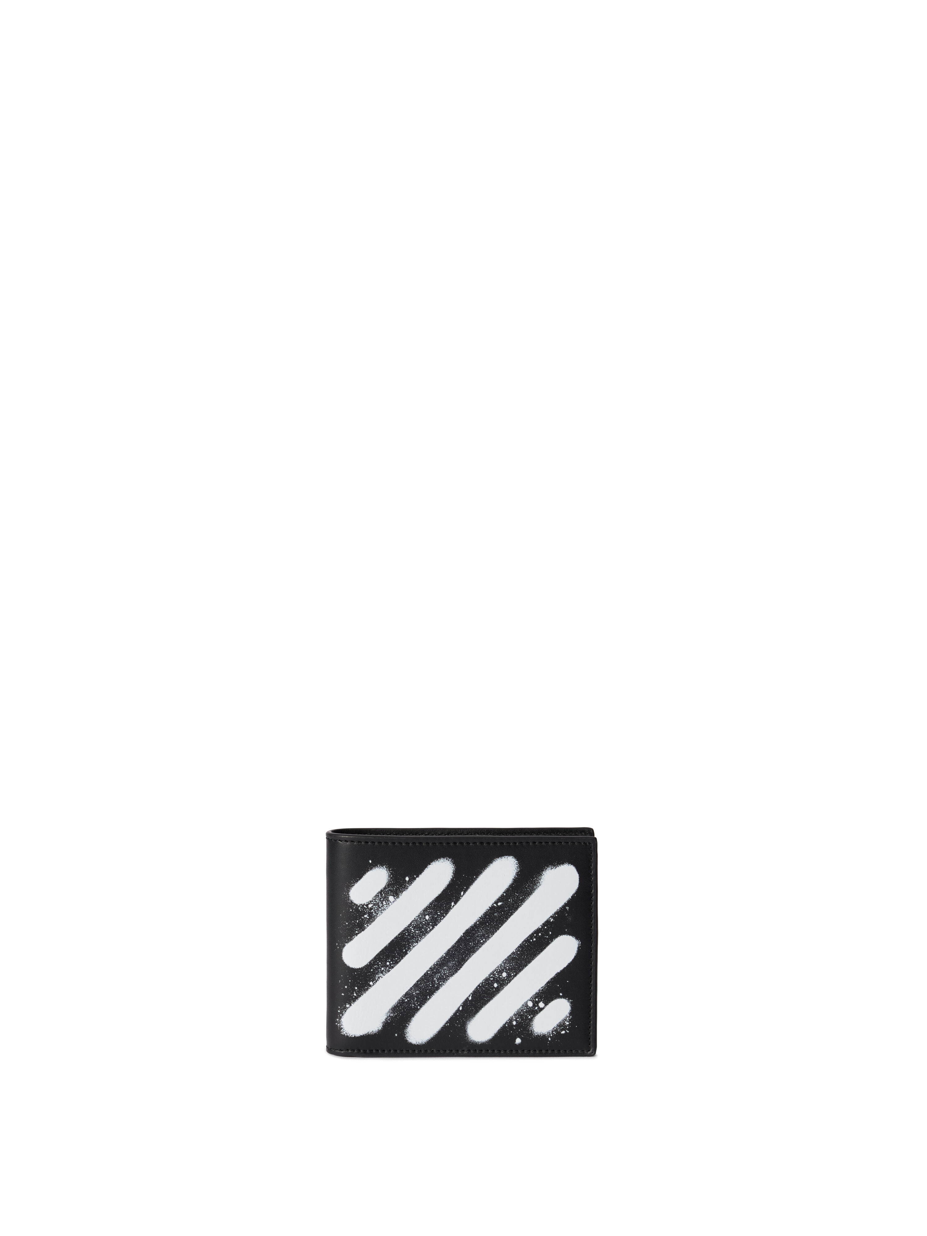 Expertly crafted in premium leather, the Diagonal Spray Bifold Wallet merges urban aesthetics with functional design, featuring a distinctive diagonal spray motif and multiple card slots. - Premium leather construction for durability - Diagonal spray motif on the front panel - Multiple card slots for organization - Interior debossed Off-White™ logo - Bifold structure for compact carrying - Smooth finish on rear panel - Made in Italy DETAILS - Material: 1 100% Cotton, Material: 2 100% Viscose, Material: 1 100% Calf Leather, Material: 2 100% Calf Leather - Code: OMNC09BF25LEA0011001