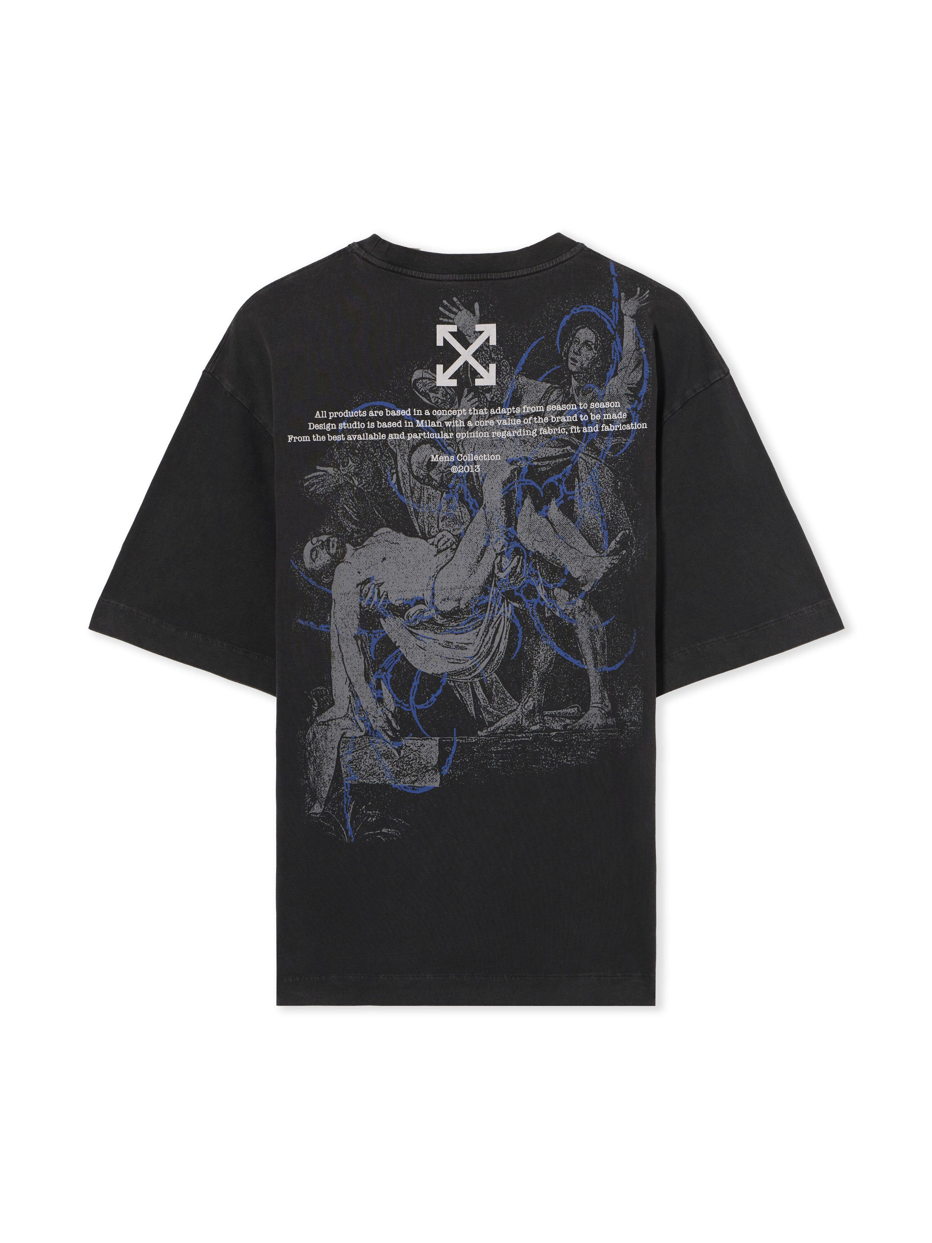 <p>Embrace a fusion of art and streetwear with the Faded Painting Skate Logo T-Shirt, crafted from premium cotton featuring intricate graphic detailing.</p><ul type="circle"><li>Premium cotton construction</li><li>Short sleeves for a relaxed fit</li><li>Front patch with detailed artwork</li><li>Back graphic with signature Off-White™ motif</li><li>Ribbed crew neckline</li><li>Distinctive urban aesthetic</li><li>Monochrome palette with faded effect</li></ul> DETAILS - Embroidery: 100% Polyester, Material: 100% Cotton, Rib Details: 5% Elastane 95% Cotton - Code: OMAA120F25JER00S1345
