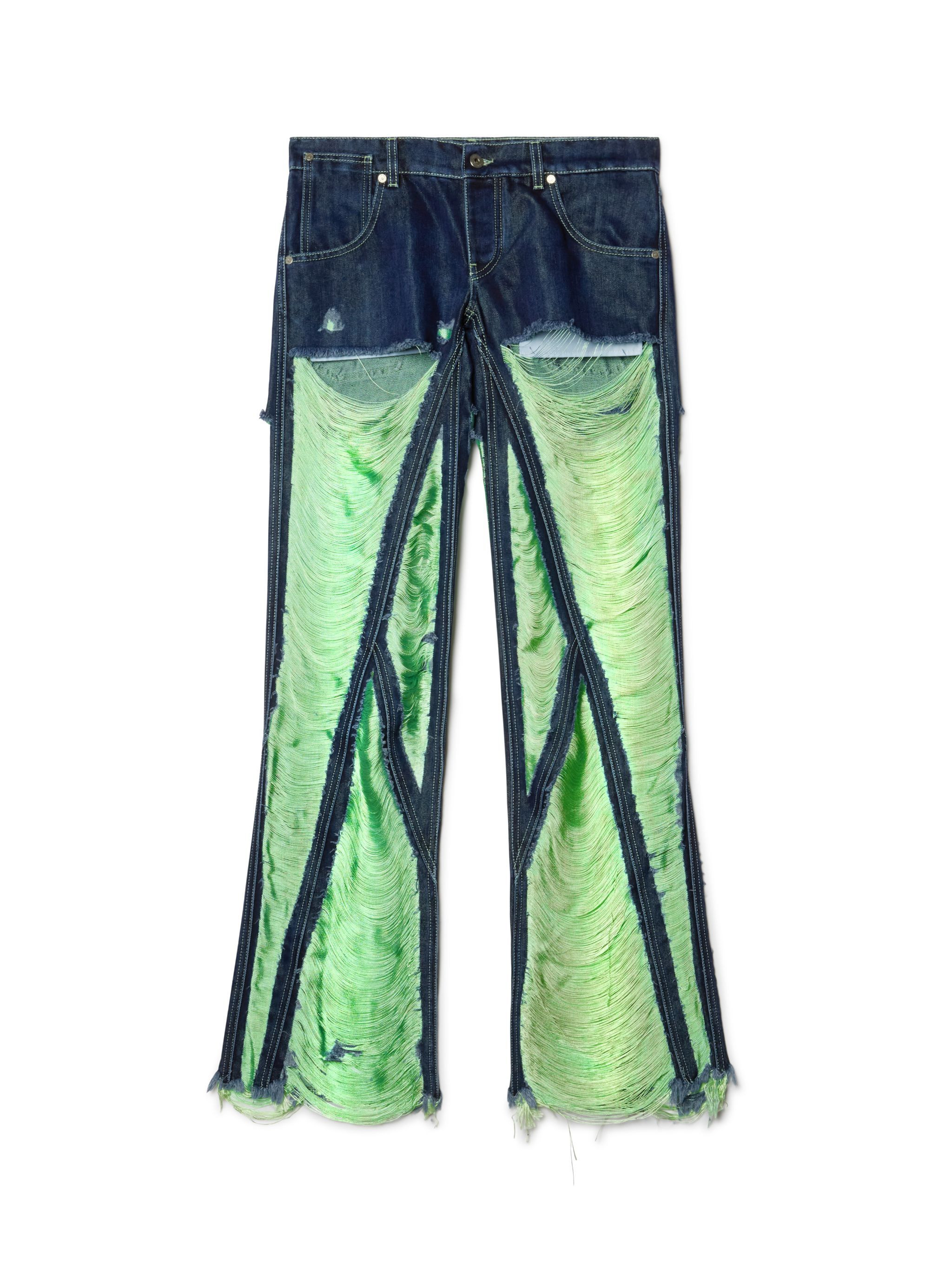 Green Shredded Denim Pants