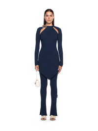 Exemplifying urban elegance, this Off-White™ mini dress combines architectural precision with a contemporary aesthetic, featuring a silver tie detail and asymmetrical hemline. - Constructed from heavy jersey fabric - Distinctive silver tie detail at neckline - Asymmetrical pointed hem - Long sleeves with open shoulder design - Concealed rear fastening for seamless finish - Made in Italy DETAILS - Material: 33% Polyamide (Nylon) 6% Elastane 61% Viscose - Code: OWDB55KF25JER0014848