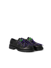 The Heritage Leather Loafers embody a fusion of luxury and streetwear aesthetics, crafted from premium leather and featuring distinctive lace-up detailing. - Round toe with reinforced stitching for durability - Contrasting green and purple lace-up fastening - Robust treaded rubber sole for traction - Soft-grain leather upper for a polished finish - Classic loafer silhouette with modern edge - Perforated detailing for subtle texture - Padded insole for enhanced comfort - Rear panel with seamless construction - Made in Italy DETAILS - Lining: 100% Bovine Leather, Sole: 35% Bovine Leather 65% Rubber, Upper Shoe: 100% Bovine Leather - Code: OMIR001F25LEA0011084