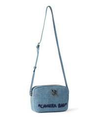 Denim camera bag featuring an adjustable strap and iconic front logo motif. - Adjustable shoulder strap - Front embossed logo motif - Secure zip fastening - Rear slip pocket for additional storage - Structured rectangular silhouette - Textured denim exterior - Made in Italy DETAILS - Coating: 100% Polyurethane, Details: 100% Calf Leather, Material: 100% Cotton, Lining: 100% Polyester - Code: OWNN18JF25DEN0014145