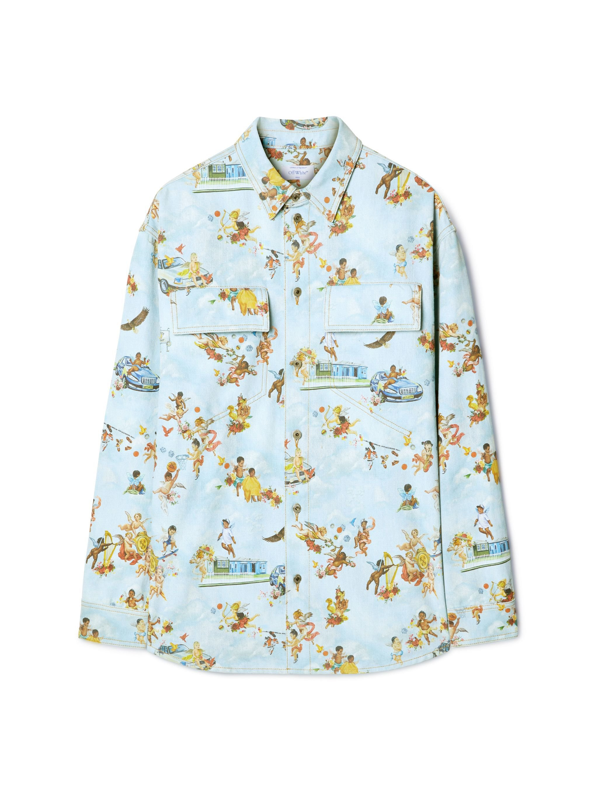 This military-style denim shirt is crafted from 100% cotton and features an all-over fresco print with cherubs and cars. Made in Italy. DETAILS - NALLA WEARS SIZE M HEIGHT: 6' (184 CM) BUST: 35” (89 CM) WAIST: 27“ (70 CM) HIPS: 35” (89 CM) - Material:Cotton 100% - Code: OMYD05HS25DEN0038400