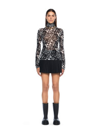 Multilogo Mesh Long Sleeve Turtle Neck Top