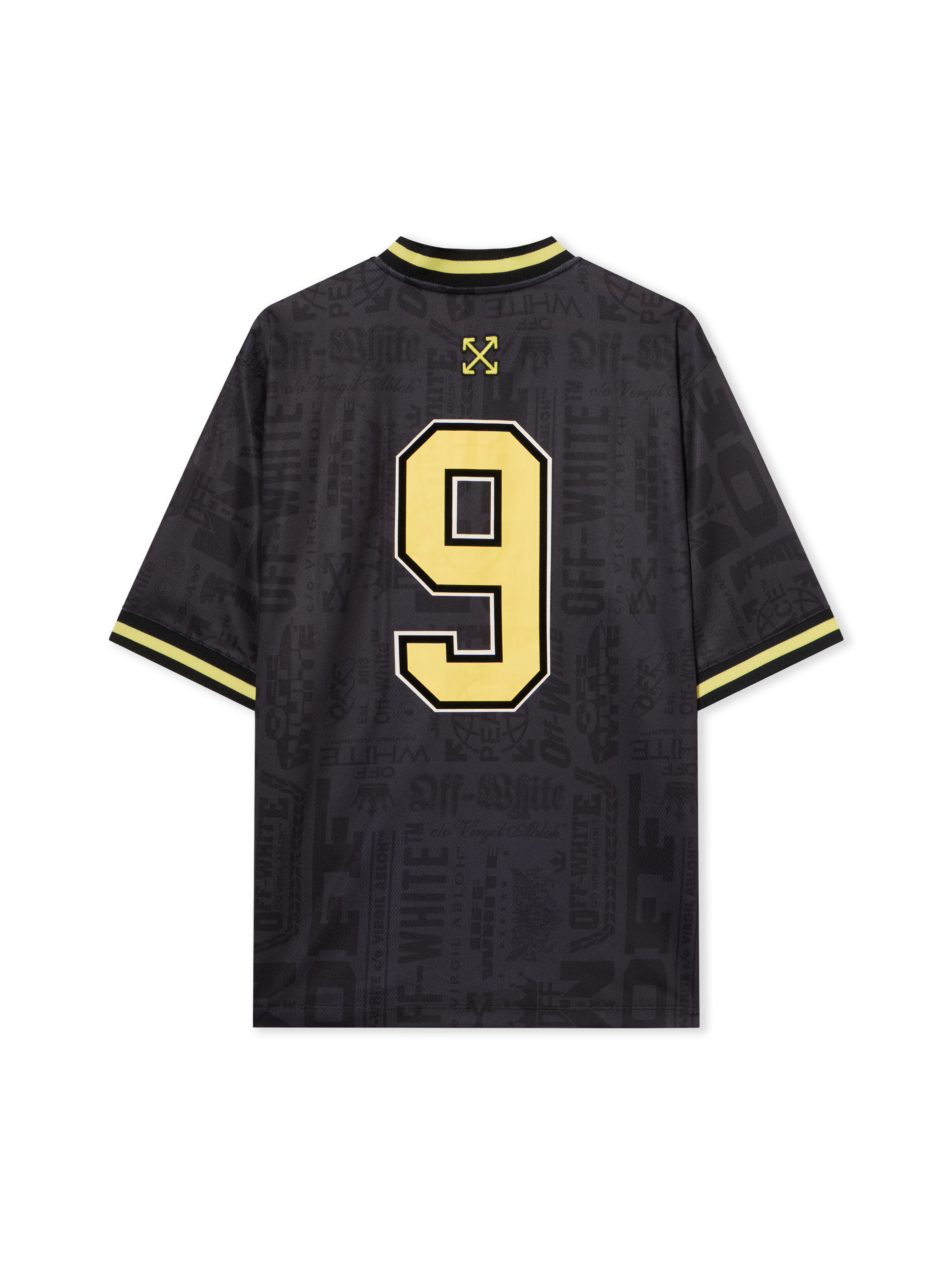 Immerse in urban sophistication with the Multilogo Soccer Short Sleeve Tee, seamlessly blending streetwear aesthetics with technical precision. - Crafted from premium fabric showcasing a multilogo pattern - Features a V-neckline and short sleeves for a relaxed fit - Distinctive numerical emblem prominently displayed on front and back - Signature Off-White™ branding elements integrated into the design - Contrasting trim highlights the neckline and sleeves DETAILS - Embroidery: 100% Polyester, Material: 100% Polyester, Rib Details: 5% Elastane 95% Cotton - Code: OMAD00SF25JER0021010
