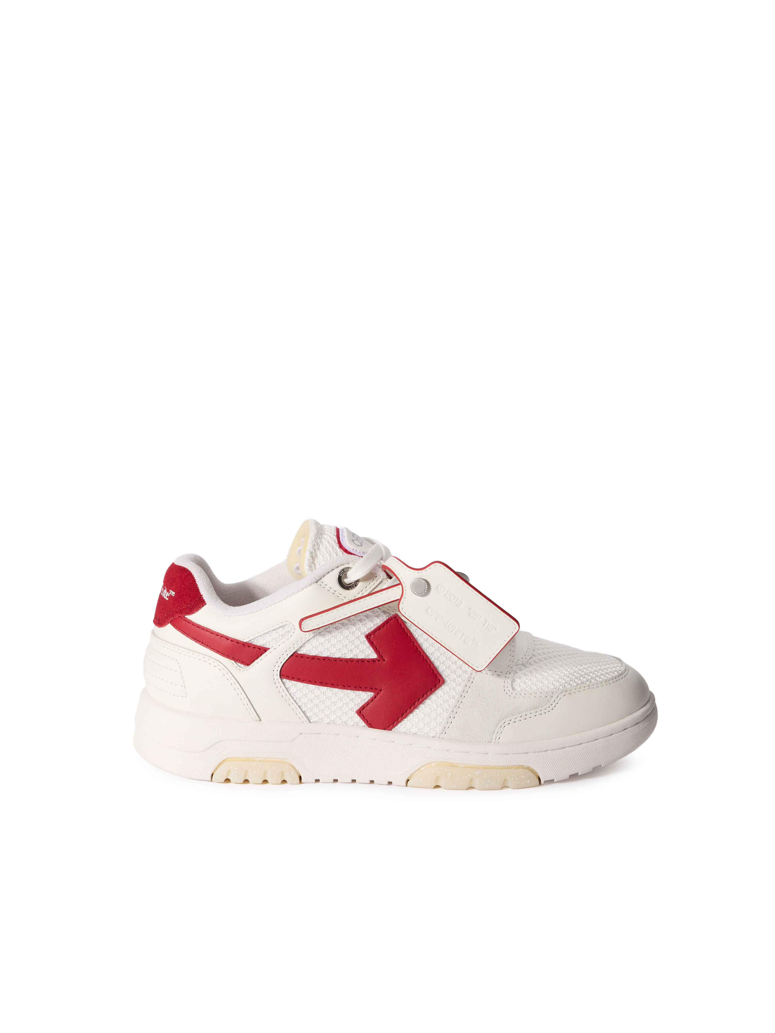 <p>The Out Of Office Slim sneakers embody a fusion of urban aesthetics and technical craftsmanship, featuring a mesh and leather upper with signature arrow motifs.</p><ul type="circle"><li>Round toe design</li><li>Lace-up fastening system</li><li>Distinctive arrow motifs on sides</li><li>Branded tongue and heel tab for added identity</li><li>Lightweight cushioned midsole</li><li>Treaded rubber sole for enhanced grip</li><li>Mesh and leather upper construction</li></ul> DETAILS - Lining: 18% Polyester 82% Recycled polyester, Sole: 100% Rubber, Upper Shoe: 11% Recycled polyester 89% Bovine Leather - Code: OMIA243F25LEA0010129