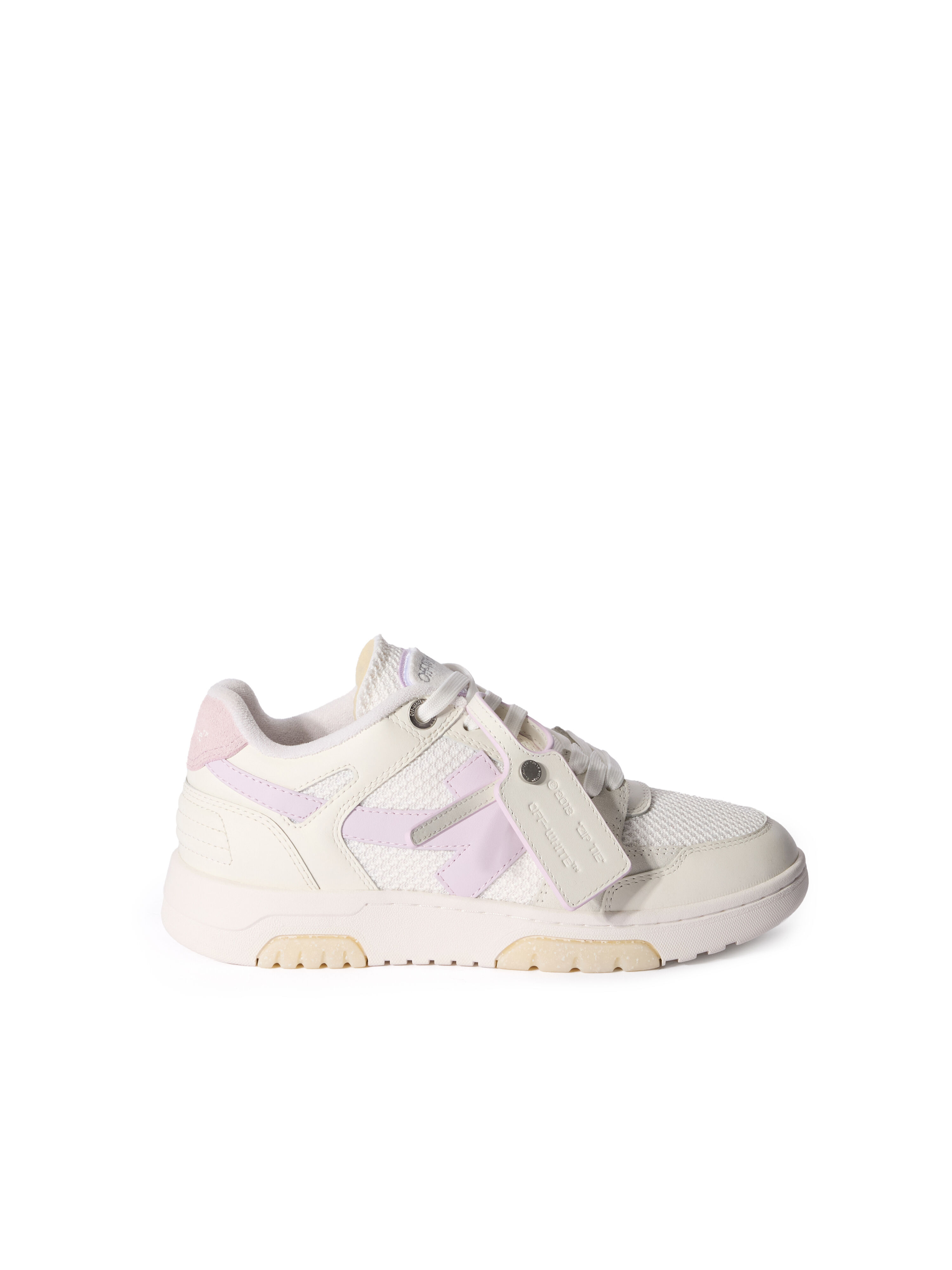 <p>The Out Of Office Slim Sneakers feature a refined blend of leather and mesh, characterized by their distinctive Off-White™ signature motifs and urban-inspired silhouette.</p><ul type="circle"><li>Round toe design</li><li>Lace-up fastening with signature tag</li><li>Mesh and leather upper</li><li>Iconic arrow detailing on sides</li><li>Branded tongue and heel tab</li><li>Lightweight cushioned midsole</li><li>Treaded rubber sole for enhanced grip</li></ul> DETAILS - Lining: 18% Polyester 82% Recycled polyester, Sole: 100% Rubber, Upper Shoe: 47% Recycled polyester 53% Bovine Leather - Code: OWIA276F25LEA0010136