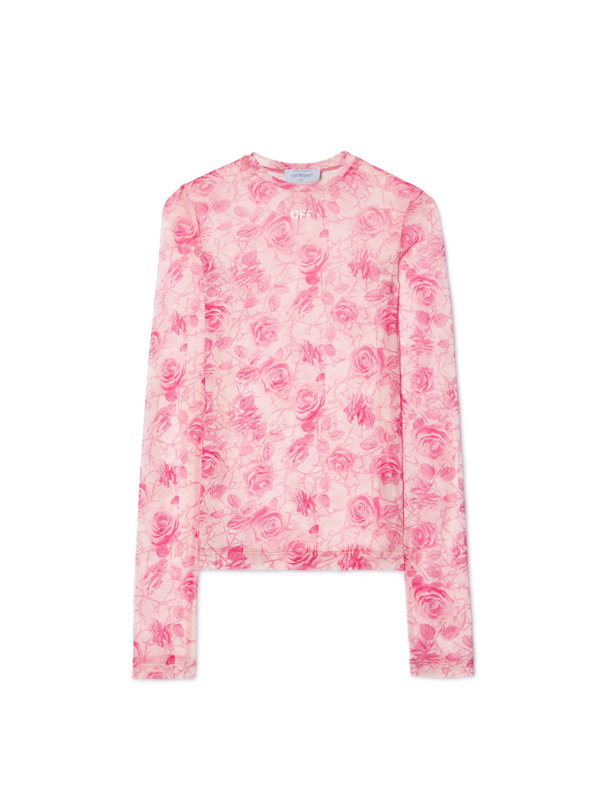 This long-sleeved top is crafted from mesh and features a small stamp logo and all-over rose print. Made in Italy. DETAILS - JUNI WEARS SIZE 38 HEIGHT: 5' 7” (176 CM) BUST: 28” (73 CM) WAIST: 23“ (60 CM) HIPS: 35” (89 CM) - Materials:Elastane 7%, Polyamide 93% - Code: OWAD136S25JER0023C01