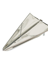 Part of the SS25 "DUTY FREE" runway collection, this paper plane-shaped clutch features a silver finish, a signature quote and ball-chain strap. Made in Italy. DETAILS - Weight: 116 g Measurements: Height 7 cm;Width 15,5 cm;Depth 24 cm - Code: OWNM057Z25FAB0017210