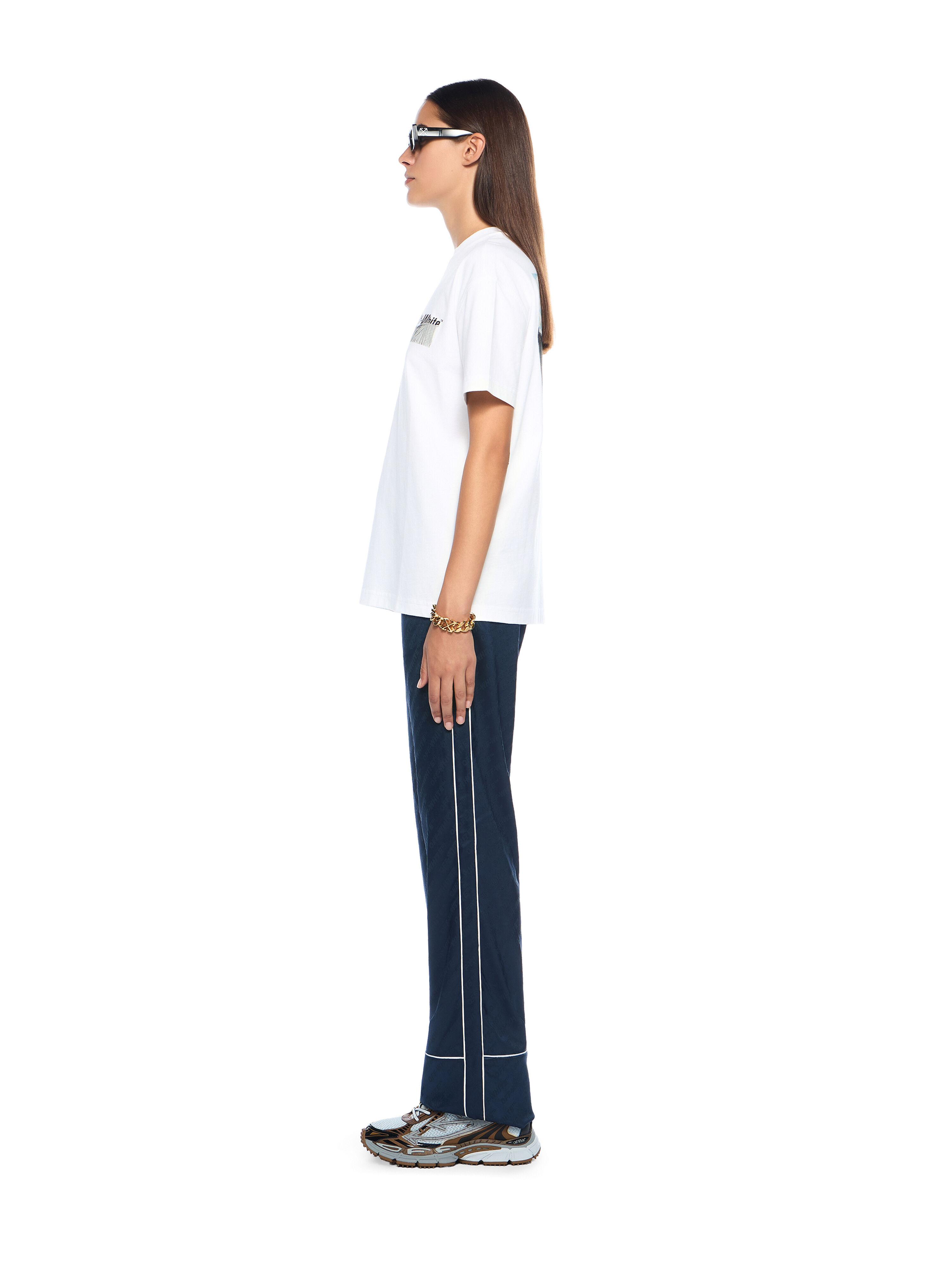 <p>This Off-White™ T-shirt embodies a refined urban aesthetic, featuring a distinctive back graphic inspired by sound systems.</p><ul type="circle"><li>Crafted from premium cotton for comfortable wear</li><li>Signature back print with sound system motif</li><li>Classic crew neck design</li><li>Short sleeves for versatile styling</li><li>Straight hem for a clean finish</li><li>Trademark Off-White™ branding</li></ul> DETAILS - Fabric: 100% Cotton, Rib Details: 95% Cotton, 5% Elastane - Code: OWAA089F25JER0070110