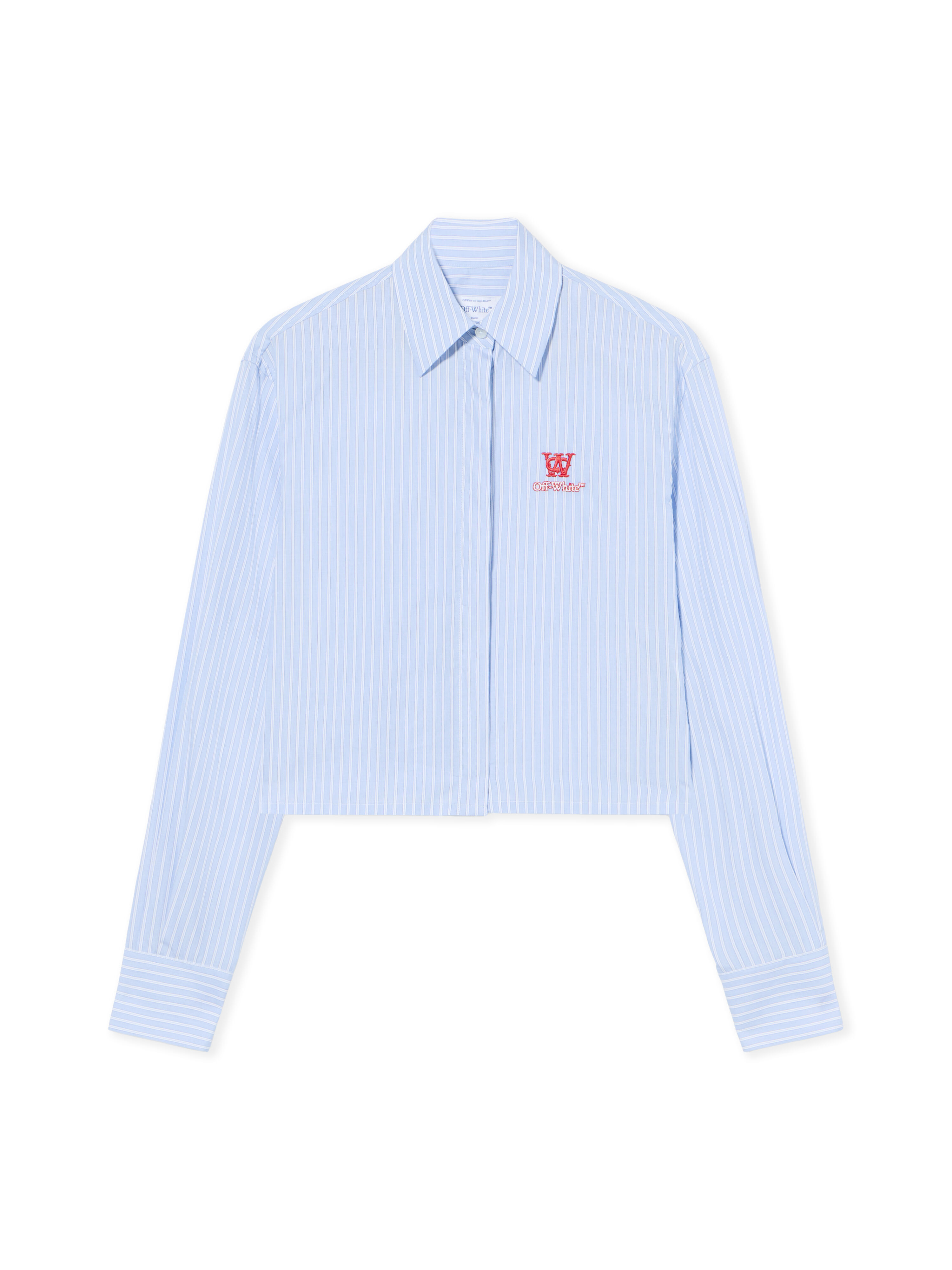 <p>Experience refined urbanity with the Striped Poplin Shirt, featuring distinctive tailoring and emblematic detailing.</p><ul type="circle"><li>Smooth poplin construction</li><li>Buttoned collar and cuffs</li><li>Signature logo embroidery on the chest</li><li>Concealed front placket</li><li>Structured rear yoke</li><li>Relaxed silhouette</li><li>Made in Italy</li></ul> DETAILS - Material: 100% Cotton - Code: OWGE02AF25FAB0014026