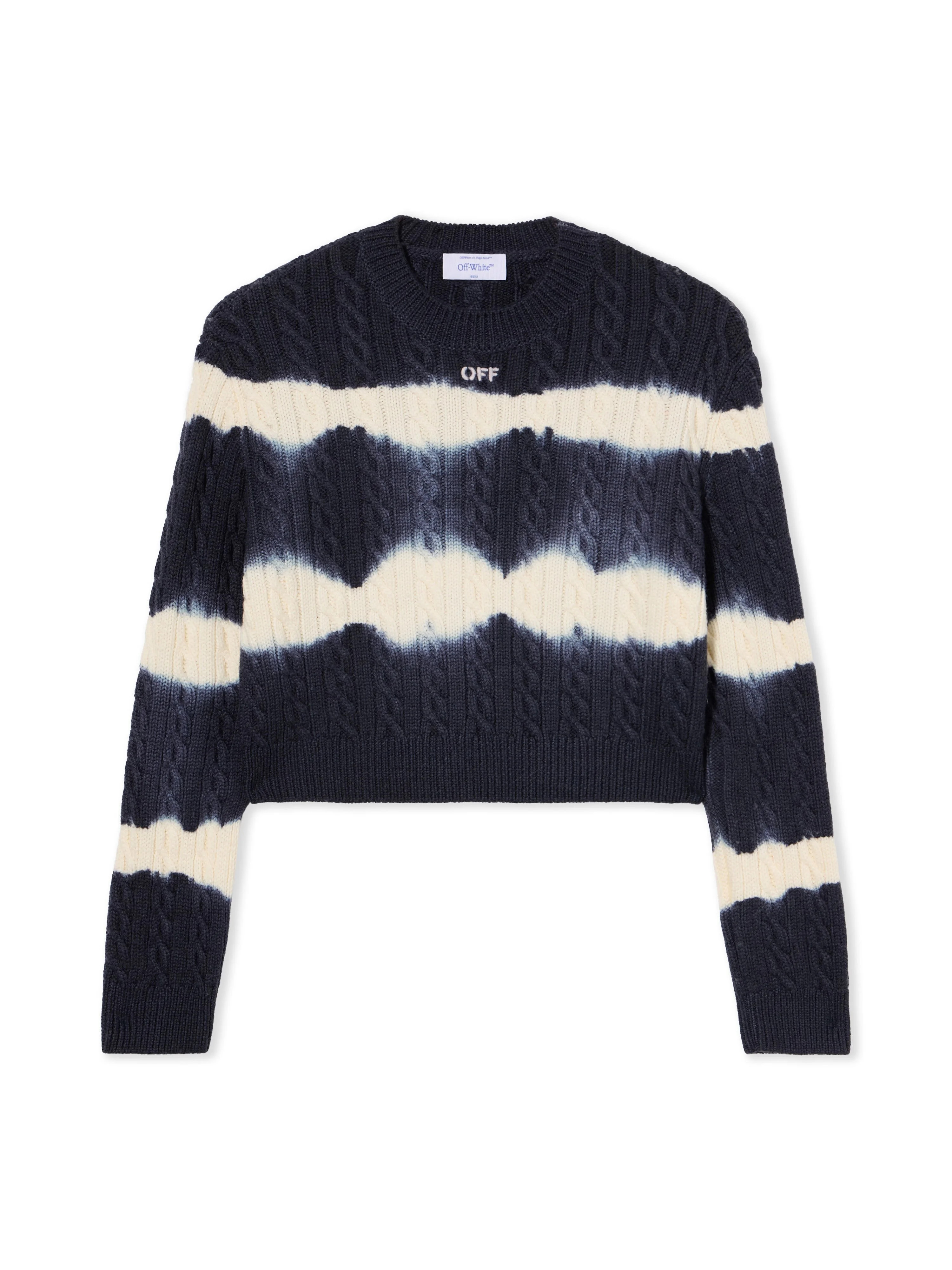 Experience urban sophistication with the Tiedye Cable Crop Crewneck Sweater, blending intricate knit patterns with a striking aesthetic. - Distinctive tie-dye pattern - Signature cable knit texture - Cropped silhouette - Ribbed crew neckline - Long sleeves - Subtle logo detail at front - Made in Italy DETAILS - Material: 100% Virgin Wool - Code: OWHE10IF25KNI0014801