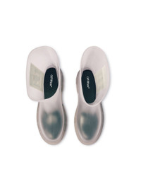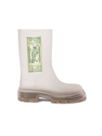 These rain boots are transparent and feature banknote graphics with a signature quote. 100% PVC. DETAILS - YUTO WEARS SIZE 42 HEIGHT: 6' 2” (189 CM) BUST: 32” (83 CM) WAIST: 25“ (64 CM) HIPS: 36” (92 CM) - Material:LINING:Fabric 100%, OUTER:PVC 100%, SOLE:PVC 100%, LINING:PVC 100% - Code: OMIE00BS25MAT0017901