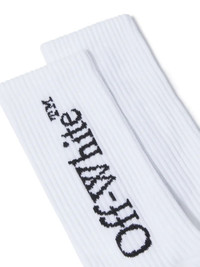 Ribbed cotton-blend calf socks featuring the signature Off-White™ logo for a bold yet minimal everyday statement. - Mid-calf length - Ribbed knit construction - Contrasting Off-White™ logo at side and sole - Elasticated cuffs for a secure fit - Soft stretch cotton blend DETAILS - Fabric: 70% Cotton, 27% Polyamide (Nylon) 3% Elastane - Code: OWRA035C99KNI0010110