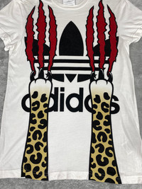 Please read all the description carefully before buying..if you have any questions feel free to ask (check measurements below) Size : please refer to actual measurement given and compared with your best fitting clothes ) Tag read : Adidas x Jeremy Scott size - S Measurements Good used condition : 7/10 Please enlarge the photos to get clear image. Measurement taken while laying flat. Armpit : 17.5”inches Shoulder to shoulder : 16.5”inches Length : 27.5”inches Sleeve length from shoulder : 6”inches Please compare the measurement with your garment. Kindly read my shipping and policies. Shipping may takes 3 to 7 days depends on location. Im using dhl express Please contact us for Expedited Shipping. PLEASE leave ur "phone number" on the note when making an order. Thanks for dropping by. This USED & Vintage Items, So dont expected it to be like NEW Condition!! All measurements are taken with the garment flat on the ground ATTENTION : Please pay close attention to measurements provided. Do not rely on tag size as pre-worn items may have been altered, stretched or shrunk & vintage sizes do not directly translate the modern sizes.The best way to ensure a correct fit is to compare our measurements with the measurements of a similar item that you know fits you well. And please take note,** i will not accept return if u cant fit it. As i already give my manual measurement. Please enlarge the photos for clearer image. ** Please do not expect the shirt in mint condition unless stated.Its because vintage and used items may have sign of wear. Thank you very much for your visit.