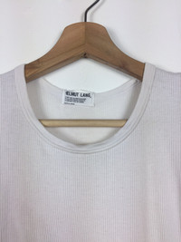 Please read all the description carefully before buying..if you have any questions feel free to ask (check measurements below) Size : please refer to actual measurement given and compared with your best fitting clothes ) Tag read : Helmut Lang Stretchable size - S Measurements Good used condition : 8/10 Please enlarge the photos to get clear image. Measurement taken while laying flat. Armpit : 16”inches Shoulder to shoulder : 15”inches Length : 25”inches Sleeve length from shoulder : 8”inches Please compare the measurement with your garment. Kindly read my shipping and policies. Shipping may takes 3 to 7 days depends on location. Im using dhl express Please contact us for Expedited Shipping. PLEASE leave ur "phone number" on the note when making an order. Thanks for dropping by. This USED & Vintage Items, So dont expected it to be like NEW Condition!! All measurements are taken with the garment flat on the ground ATTENTION : Please pay close attention to measurements provided. Do not rely on tag size as pre-worn items may have been altered, stretched or shrunk & vintage sizes do not directly translate the modern sizes.The best way to ensure a correct fit is to compare our measurements with the measurements of a similar item that you know fits you well. And please take note,** i will not accept return if u cant fit it. As i already give my manual measurement. Please enlarge the photos for clearer image. ** Please do not expect the shirt in mint condition unless stated.Its because vintage and used items may have sign of wear. Thank you very much for your visit.