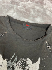 Please read all the description carefully before buying..if you have any questions feel free to ask (check measurements below) Size : please refer to actual measurement given and compared with your best fitting clothes ) Tag read : Edge Rupert size - S Measurements Good used condition : 7/10(distressed) Please enlarge the photos to get clear image. Measurement taken while laying flat. Armpit : 18.5”inches Shoulder to shoulder : 17”inches Length : 26”inches Sleeve length from shoulder : 8”inches Please compare the measurement with your garment. Kindly read my shipping and policies. Shipping may takes 3 to 7 days depends on location. Im using dhl express Please contact us for Expedited Shipping. PLEASE leave ur "phone number" on the note when making an order. Thanks for dropping by. This USED & Vintage Items, So dont expected it to be like NEW Condition!! All measurements are taken with the garment flat on the ground ATTENTION : Please pay close attention to measurements provided. Do not rely on tag size as pre-worn items may have been altered, stretched or shrunk & vintage sizes do not directly translate the modern sizes.The best way to ensure a correct fit is to compare our measurements with the measurements of a similar item that you know fits you well. And please take note,** i will not accept return if u cant fit it. As i already give my manual measurement. Please enlarge the photos for clearer image. ** Please do not expect the shirt in mint condition unless stated.Its because vintage and used items may have sign of wear. Thank you very much for your visit.