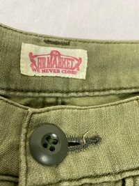 Please read all the description carefully before buying..if you have any questions feel free to ask (check measurements below) Size : please refer to actual measurement given and compared with your best fitting clothes ) Tag read : HR MARKET size - 31 Measurements Good used condition : 8/10 Please enlarge the photos to get clear image. Measurement taken while laying flat. Waist : 31”inches Inseams : 11”inches Outseams : 21”inches Open leg : 17”inches Please compare the measurement with your garment. Kindly read my shipping and policies. Shipping may takes 3 to 7 days depends on location. Im using dhl express Please contact us for Expedited Shipping. PLEASE leave ur "phone number" on the note when making an order. Thanks for dropping by. This USED & Vintage Items, So dont expected it to be like NEW Condition!! All measurements are taken with the garment flat on the ground ATTENTION : Please pay close attention to measurements provided. Do not rely on tag size as pre-worn items may have been altered, stretched or shrunk & vintage sizes do not directly translate the modern sizes.** i will not accept return if u cant fit it.The best way to ensure a correct fit is to compare our measurements with the measurements of a similar item that you know fits you well.Please enlarge the photos for clearer image. ** Please do not expect the shirt in mint condition unless stated.Its because vintage and used items may have sign of wear. Thank you very much for your visit.