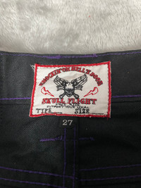 Please read all the description carefully before buying..if you have any questions feel free to ask (check measurements below) Size : please refer to actual measurement given and compared with your best fitting clothes ) Tag read : Skull Flight size - 27 Measurements Good used condition : 7/10 Please enlarge the photos to get clear image. Measurement taken while laying flat. Waist : 27”inches Inseams : "30.5”inches Outseams : 40inches Open leg : 15”inches Please compare the measurement with your garment. Kindly read my shipping and policies. Shipping may takes 3 to 7 days depends on location. Im using dhl express Please contact us for Expedited Shipping. PLEASE leave ur "phone number" on the note when making an order. Thanks for dropping by. This USED & Vintage Items, So dont expected it to be like NEW Condition!! All measurements are taken with the garment flat on the ground ATTENTION : Please pay close attention to measurements provided. Do not rely on tag size as pre-worn items may have been altered, stretched or shrunk & vintage sizes do not directly translate the modern sizes.** i will not accept return if u cant fit it.The best way to ensure a correct fit is to compare our measurements with the measurements of a similar item that you know fits you well.Please enlarge the photos for clearer image. ** Please do not expect the shirt in mint condition unless stated.Its because vintage and used items may have sign of wear. Thank you very much for your visit.