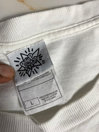 Please read all the description carefully before buying..if you have any questions feel free to ask (check measurements below) Size : please refer to actual measurement given and compared with your best fitting clothes ) Tag read : Vintage Keith Haring size - L Measurements Good used condition : 8/10 Please enlarge the photos to get clear image. Measurement taken while laying flat. Armpit : 20.5”inches Shoulder to shoulder : "inches Length : 28”inches Sleeve length from shoulder : "inches Please compare the measurement with your garment. Kindly read my shipping and policies. Shipping may takes 3 to 7 days depends on location. Im using dhl express Please contact us for Expedited Shipping. PLEASE leave ur "phone number" on the note when making an order. Thanks for dropping by. This USED & Vintage Items, So dont expected it to be like NEW Condition!! All measurements are taken with the garment flat on the ground ATTENTION : Please pay close attention to measurements provided. Do not rely on tag size as pre-worn items may have been altered, stretched or shrunk & vintage sizes do not directly translate the modern sizes.The best way to ensure a correct fit is to compare our measurements with the measurements of a similar item that you know fits you well. And please take note,** i will not accept return if u cant fit it. As i already give my manual measurement. Please enlarge the photos for clearer image. ** Please do not expect the shirt in mint condition unless stated.Its because vintage and used items may have sign of wear. Thank you very much for your visit.