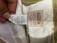 Please read all the description carefully before buying..if you have any questions feel free to ask (check measurements below) Size : please refer to actual measurement given and compared with your best fitting clothes ) Tag read : Vtg CC Filson size - 31 Measurements Good used condition : 7/10 Please enlarge the photos to get clear image. Measurement taken while laying flat. Waist : 31”inches Inseams : 29.5”inches Outseams : 41”inches Open leg : 18”inches Please compare the measurement with your garment. Kindly read my shipping and policies. Shipping may takes 3 to 7 days depends on location. Im using dhl express Please contact us for Expedited Shipping. PLEASE leave ur "phone number" on the note when making an order. Thanks for dropping by. This USED & Vintage Items, So dont expected it to be like NEW Condition!! All measurements are taken with the garment flat on the ground ATTENTION : Please pay close attention to measurements provided. Do not rely on tag size as pre-worn items may have been altered, stretched or shrunk & vintage sizes do not directly translate the modern sizes.** i will not accept return if u cant fit it.The best way to ensure a correct fit is to compare our measurements with the measurements of a similar item that you know fits you well.Please enlarge the photos for clearer image. ** Please do not expect the shirt in mint condition unless stated.Its because vintage and used items may have sign of wear. Thank you very much for your visit.