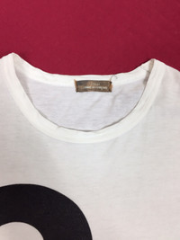 Please read all the description carefully before buying..if you have any questions feel free to ask (check measurements below) Size : please refer to actual measurement given and compared with your best fitting clothes ) Tag read : Comme des Garcons 20 years size - L Measurements Good used condition : 7/10 (washtag faded this is vintage 90’s) Please enlarge the photos to get clear image. Measurement taken while laying flat. Armpit : 20.5”inches Shoulder to shoulder : 20”inches Length : 27”inches Sleeve length from shoulder : 7”inches Please compare the measurement with your garment. Kindly read my shipping and policies. Shipping may takes 3 to 7 days depends on location. Im using dhl express Please contact us for Expedited Shipping. PLEASE leave ur "phone number" on the note when making an order. Thanks for dropping by. This USED & Vintage Items, So dont expected it to be like NEW Condition!! All measurements are taken with the garment flat on the ground ATTENTION : Please pay close attention to measurements provided. Do not rely on tag size as pre-worn items may have been altered, stretched or shrunk & vintage sizes do not directly translate the modern sizes.The best way to ensure a correct fit is to compare our measurements with the measurements of a similar item that you know fits you well. And please take note,** i will not accept return if u cant fit it. As i already give my manual measurement. Please enlarge the photos for clearer image. ** Please do not expect the shirt in mint condition unless stated.Its because vintage and used items may have sign of wear. Thank you very much for your visit.