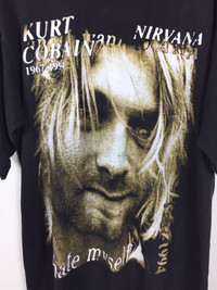 Please read all the description carefully before buying..if you have any questions feel free to ask (check measurements below) Size : please refer to actual measurement given and compared with your best fitting clothes ) Tag read : Vintage Nirvana Kurt Cobain Bootleg size - XL Measurements Please enlarge the photos to get clear image. Measurement taken while laying flat. Armpit : 21”inches Shoulder to shoulder : 19.5”inches Length : 31”inches Sleeve length from shoulder : 10”inches Please compare the measurement with your garment. Kindly read my shipping and policies. Shipping may takes 3 to 7 days depends on location. Im using dhl express Please contact us for Expedited Shipping. PLEASE leave ur "phone number" on the note when making an order. Thanks for dropping by. This USED & Vintage Items, So dont expected it to be like NEW Condition!! All measurements are taken with the garment flat on the ground ATTENTION : Please pay close attention to measurements provided. Do not rely on tag size as pre-worn items may have been altered, stretched or shrunk & vintage sizes do not directly translate the modern sizes.The best way to ensure a correct fit is to compare our measurements with the measurements of a similar item that you know fits you well. And please take note,** i will not accept return if u cant fit it. As i already give my manual measurement. Please enlarge the photos for clearer image. ** Please do not expect the shirt in mint condition unless stated.Its because vintage and used items may have sign of wear. Thank you very much for your visit.