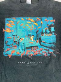Please read all the description carefully before buying..if you have any questions feel free to ask (check measurements below) Size : please refer to actual measurement given and compared with your best fitting clothes ) Tag read : Sandy Skoglud size - M Measurements Good used condition : 7/10 (faded&stain) Please enlarge the photos to get clear image. Measurement taken while laying flat. Armpit : 19”inches Shoulder to shoulder : 17.5”inches Length : 27”inches Sleeve length from shoulder : 6.5”inches Please compare the measurement with your garment. Kindly read my shipping and policies. Shipping may takes 3 to 7 days depends on location. Im using dhl express Please contact us for Expedited Shipping. PLEASE leave ur "phone number" on the note when making an order. Thanks for dropping by. This USED & Vintage Items, So dont expected it to be like NEW Condition!! All measurements are taken with the garment flat on the ground ATTENTION : Please pay close attention to measurements provided. Do not rely on tag size as pre-worn items may have been altered, stretched or shrunk & vintage sizes do not directly translate the modern sizes.The best way to ensure a correct fit is to compare our measurements with the measurements of a similar item that you know fits you well. And please take note,** i will not accept return if u cant fit it. As i already give my manual measurement. Please enlarge the photos for clearer image. ** Please do not expect the shirt in mint condition unless stated.Its because vintage and used items may have sign of wear. Thank you very much for your visit.