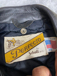 Please read all the description carefully before buying..if you have any questions feel free to ask (check measurements below) Size : please refer to actual measurement given and compared with your best fitting clothes ) Tag read : Schott Perfecto size - 38 Measurements Good used condition : 7/10 Please enlarge the photos to get clear image. Measurement taken while laying flat. Armpit : 19”inches Shoulder to shoulder : 17”inches Length : 23”inches Sleeve length from shoulder : 24”inches Please compare the measurement with your garment. Kindly read my shipping and policies. Shipping may takes 3 to 7 days depends on location. Im using dhl express Please contact us for Expedited Shipping. PLEASE leave ur "phone number" on the note when making an order. Thanks for dropping by. This USED & Vintage Items, So dont expected it to be like NEW Condition!! All measurements are taken with the garment flat on the ground ATTENTION : Please pay close attention to measurements provided. Do not rely on tag size as pre-worn items may have been altered, stretched or shrunk & vintage sizes do not directly translate the modern sizes.The best way to ensure a correct fit is to compare our measurements with the measurements of a similar item that you know fits you well. And please take note,** i will not accept return if u cant fit it. As i already give my manual measurement. Please enlarge the photos for clearer image. ** Please do not expect the shirt in mint condition unless stated.Its because vintage and used items may have sign of wear. Thank you very much for your visit.