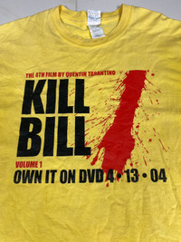 Please read all the description carefully before buying..if you have any questions feel free to ask (check measurements below) Size : please refer to actual measurement given and compared with your best fitting clothes ) Tag read : Movie Kill Bill size - M Measurements Good used condition : 7/10(faded) Please enlarge the photos to get clear image. Measurement taken while laying flat. Armpit : 20”inches Shoulder to shoulder : 19.5”inches Length : 29”inches Sleeve length from shoulder : 8.5”inches Please compare the measurement with your garment. Kindly read my shipping and policies. Shipping may takes 3 to 7 days depends on location. Im using dhl express Please contact us for Expedited Shipping. PLEASE leave ur "phone number" on the note when making an order. Thanks for dropping by. This USED & Vintage Items, So dont expected it to be like NEW Condition!! All measurements are taken with the garment flat on the ground ATTENTION : Please pay close attention to measurements provided. Do not rely on tag size as pre-worn items may have been altered, stretched or shrunk & vintage sizes do not directly translate the modern sizes.The best way to ensure a correct fit is to compare our measurements with the measurements of a similar item that you know fits you well. And please take note,** i will not accept return if u cant fit it. As i already give my manual measurement. Please enlarge the photos for clearer image. ** Please do not expect the shirt in mint condition unless stated.Its because vintage and used items may have sign of wear. Thank you very much for your visit.