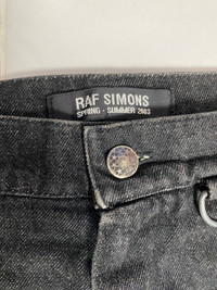 Please read all the description carefully before buying..if you have any questions feel free to ask (check measurements below) Size : please refer to actual measurement given and compared with your best fitting clothes ) Tag read : Raf simons size - 31 Measurements Good used condition : 8/10 Please enlarge the photos to get clear image. Measurement taken while laying flat. Waist : 31”inches Inseams : 29.5”inches Outseams : 38.5”inches Open leg : 14”inches Please compare the measurement with your garment. Kindly read my shipping and policies. Shipping may takes 3 to 7 days depends on location. Im using dhl express Please contact us for Expedited Shipping. PLEASE leave ur "phone number" on the note when making an order. Thanks for dropping by. This USED & Vintage Items, So dont expected it to be like NEW Condition!! All measurements are taken with the garment flat on the ground ATTENTION : Please pay close attention to measurements provided. Do not rely on tag size as pre-worn items may have been altered, stretched or shrunk & vintage sizes do not directly translate the modern sizes.** i will not accept return if u cant fit it.The best way to ensure a correct fit is to compare our measurements with the measurements of a similar item that you know fits you well.Please enlarge the photos for clearer image. ** Please do not expect the shirt in mint condition unless stated.Its because vintage and used items may have sign of wear. Thank you very much for your visit.