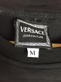 Please read all the description carefully before buying..if you have any questions feel free to ask (check measurements below) Size : please refer to actual measurement given and compared with your best fitting clothes ) Tag read : Versace Jeans Couture size - M Measurements Good used condition : 9/10 Please enlarge the photos to get clear image. Measurement taken while laying flat. Armpit : 19.5”inches Shoulder to shoulder : 20”inches Length : 27”inches Sleeve length from shoulder : 6.5”inches Please compare the measurement with your garment. Kindly read my shipping and policies. Shipping may takes 3 to 7 days depends on location. Im using dhl express Please contact us for Expedited Shipping. PLEASE leave ur "phone number" on the note when making an order. Thanks for dropping by. This USED & Vintage Items, So dont expected it to be like NEW Condition!! All measurements are taken with the garment flat on the ground ATTENTION : Please pay close attention to measurements provided. Do not rely on tag size as pre-worn items may have been altered, stretched or shrunk & vintage sizes do not directly translate the modern sizes.The best way to ensure a correct fit is to compare our measurements with the measurements of a similar item that you know fits you well. And please take note,** i will not accept return if u cant fit it. As i already give my manual measurement. Please enlarge the photos for clearer image. ** Please do not expect the shirt in mint condition unless stated.Its because vintage and used items may have sign of wear. Thank you very much for your visit.