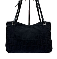 Authenticš„Fendi Zucca Black Canvas Tote Bag